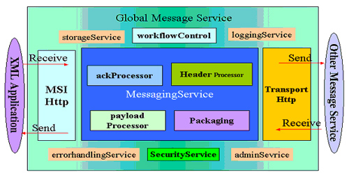 ebXML(e-BusinesseXtensible Makeup Language)的國際計劃,致力於開發一套全球通用之XML標準框架,期待各產業能使用安全、可靠且一致性的規格實行電子交易文件的交換與整合,讓過去無法受惠於EDI的中小企業也能享受e化所帶來的利益。該國際組織並於2001年5月已完成第一階段的技術規格和相關的技術報告文件;其中訊息服務(Messaging Services)即為整體ebXML技術框架的基礎要件,建置訊息傳輸機制便是實現理想的核心。
